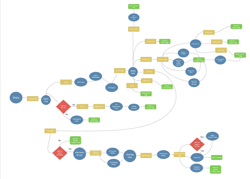 The project began with comprehensive market research and competitor analysis to identify unique features of leading furniture apps. This informed the creation of a UX Audit, User Personas, SWOT Analysis, and User Flow Diagram to understand user behavior and goals. Low and high fidelity wireframes were crafted, integrating modern styles with intuitive functionality. Peer feedback guided revisions, and prototyping introduced micro-interactions for enhanced navigation. User testing provided insights, resulting in a final iOS app prototype that met and exceeded user expectations.